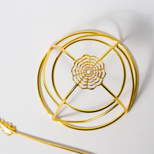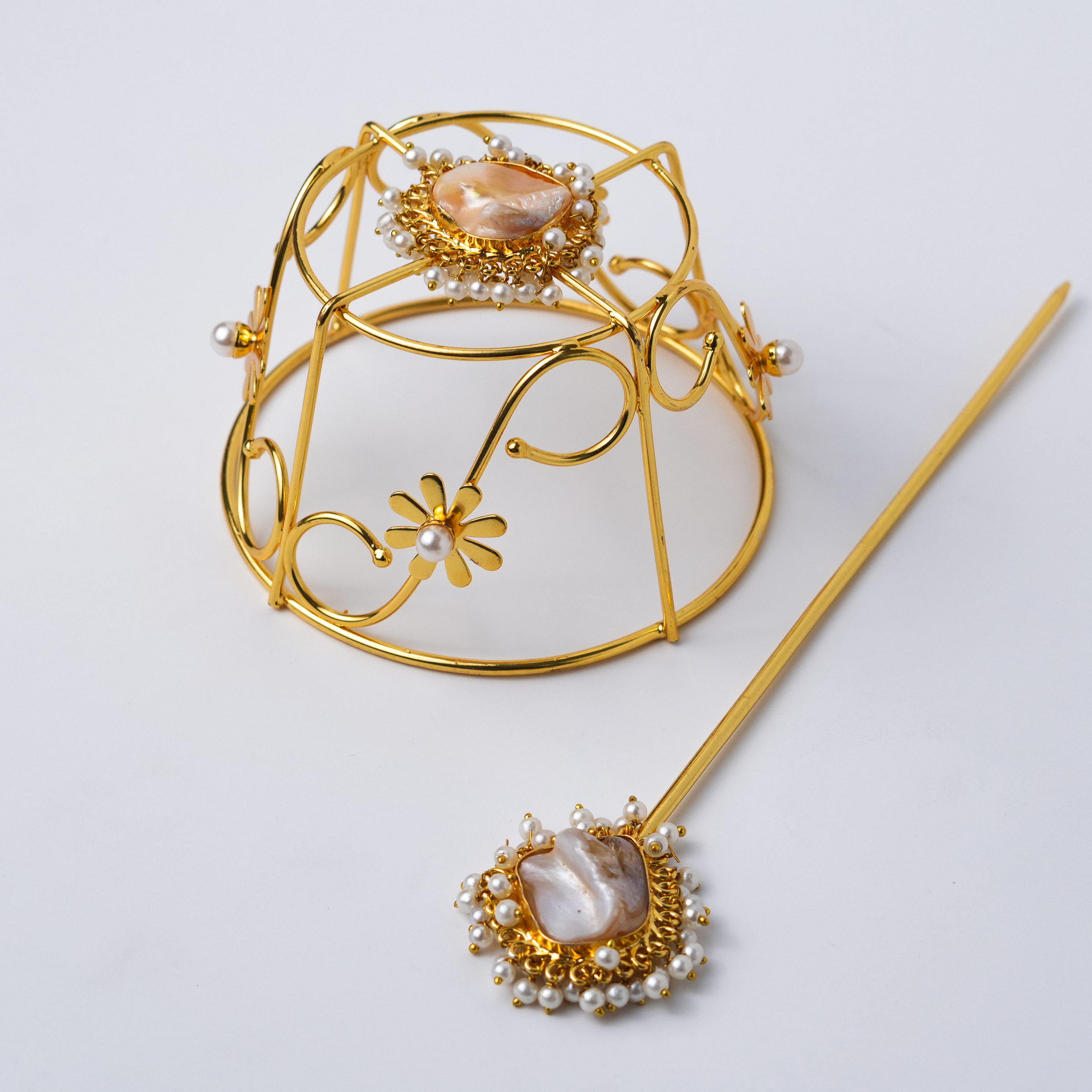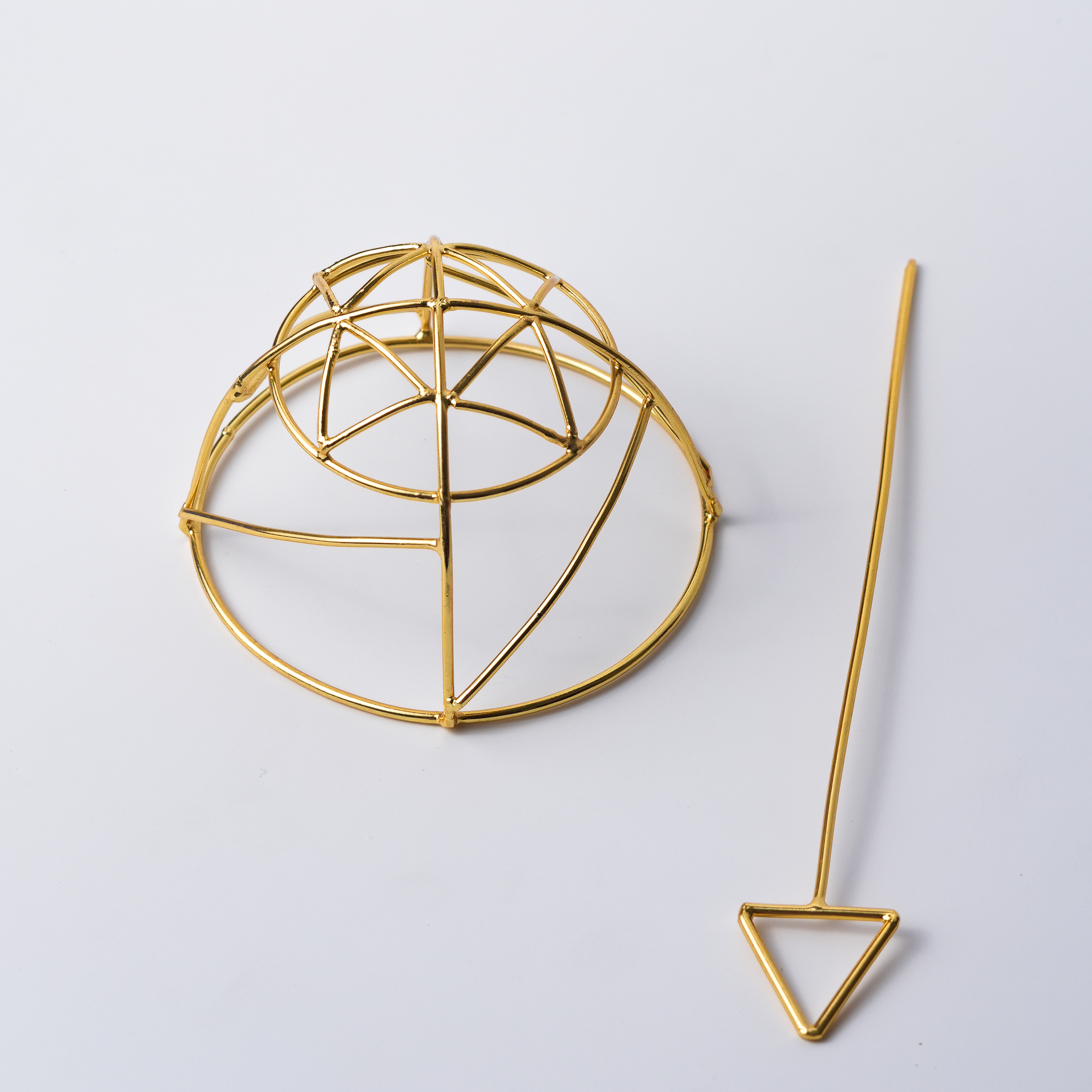 A refined gold-toned hairpin set featuring clean, structured arcs in a tiered dome design. Its minimalist geometry offers a sleek, modern elegance — perfect for polished buns and sophisticated festive looks.
