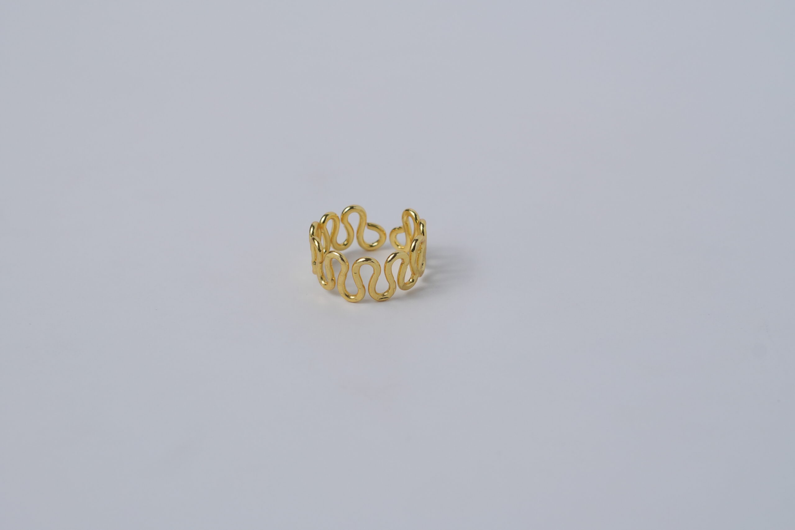 The Riva Wave Finger Ring captures the effortless rhythm of flowing water — soft, fluid, and endlessly graceful. Sculpted in a polished gold-tone finish, this open adjustable band traces gentle wave-like curves that wrap your finger in luminous movement. Lightweight yet striking, it reflects Ornamint’s signature minimal luxe aesthetic, perfect for everyday wear or as part of a modern ring stack.